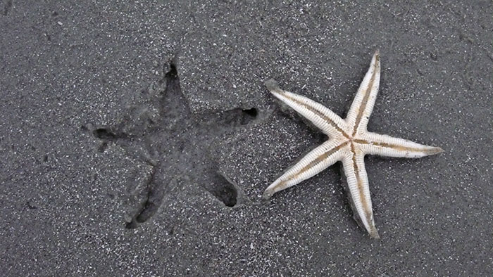 Yesterday was cold. Freezing rain and very windy. We still went to the beach, but our walk was brief. Today was just grey and cold, so walking was no problem. We saw zero people but lots of bird action. Pelicans, gulls, ducks, sandpipers, and piping plovers. These starfish must not taste very good to the gulls, as there were lots of them laying around un-eaten. Cris noticed the guy above.
