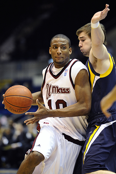 I used to shoot a lot of sports. I have always enjoyed it, and feel that shooting something that moves fast helps me to do a better job when shooting stuff that doesn’t move at all. I bought a new work camera just before the end of the year, and haven’t had much of a chance to get comfortable with it. My friend Thom Kendall has the contract to shoot all of UMASS sports, so I asked him if I could tag along for the UMASS v. LaSalle game in Springfield yesterday. I got maybe 5 decent shots out of the whole game. He probably got 30 really good ones and 50 more that were totally usable. His support was really helpful, but it made me realize just how difficult it is to get good action photos when the athletes and officials are moving around right in front of you and the lighting in the arena sucks big time. Anyway it was fun and a good learning experience. And I am pretty sure that the next time I photograph something that isn’t moving, I’ll be just that much better at it.