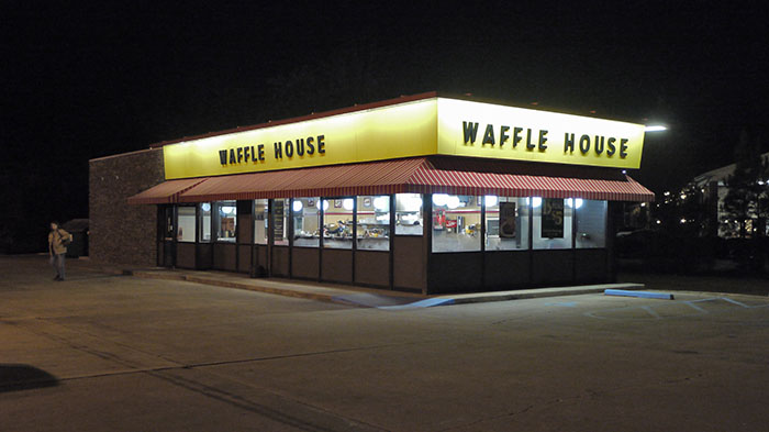 Cris, the Pearl and I left Pelham yesterday at about 4 pm and arrived at Kiawah at about 9 this morning. Driving through the night on I-95 is really the way to go. Very little traffic and it is really nice to be in the car at night with Cris. She slept on and off, Pearl was really chilled and I was jacked up with a combination of milky tea, Starbucks Frappucinos, and Sudafed. I have had this flu since the week before Christmas and am really tired of it. Just before 6 we stopped for gas and needed some breakfast. Waffle House can be a sketchy experience, but this one was decent. Lots of grease for the potatoes and eggs, and they must have thought we came from another planet, but all in all, fast and filling.