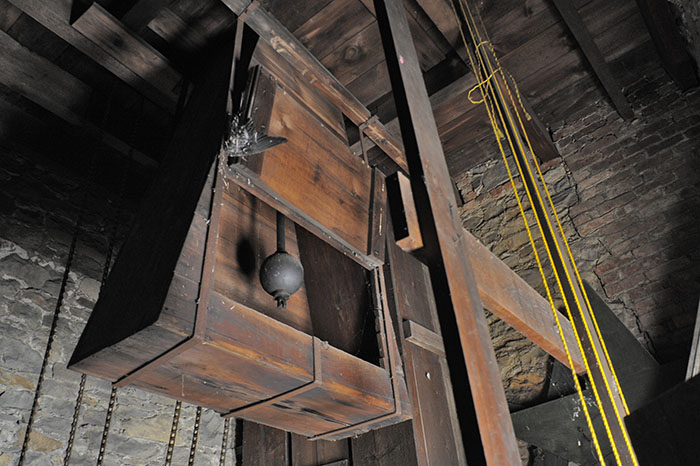 And those ones flew around like crazy when I pulled on the yellow ropes. I really had no idea that they were connected anymore, and it was quite a surprise to hear the sound of bells above me. / I am not sure what the purpose of this box is, but it might be part of the clock mechanism. Quite a magical morning.