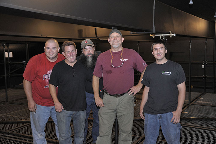 The Curtain Theatre renovation is moving along. Last week they put up the new lighting grid and it is very interesting. These are guys that have been doing all the work.