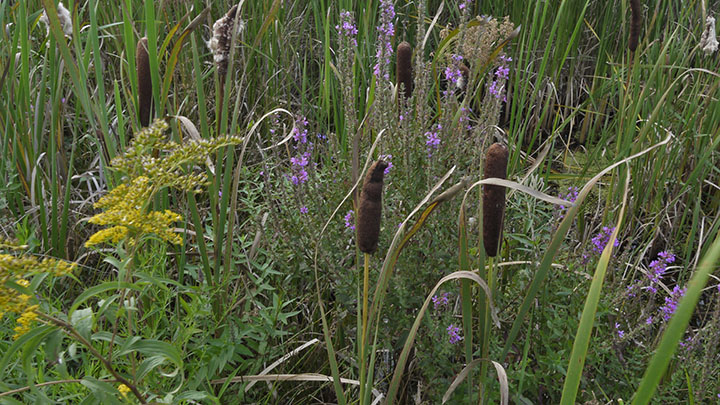 Peter, Pearl, and I had a lovely late afternoon walk today. Goldenrod, cattails, and loosestrife.