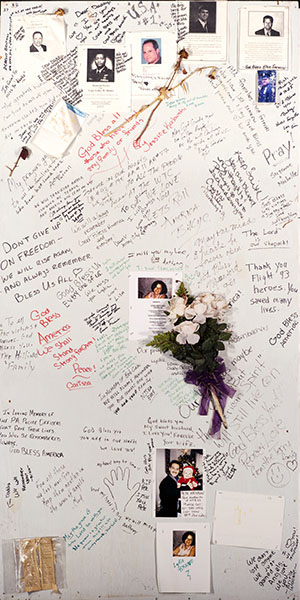 In 2008, I was asked by the New York State Museum to photograph the panels that lined the Fulton Street viewing area overlooking Ground Zero. The 4′ x 8′ sheets of plywood were assembled and meant to act as a way to help keep people in line as they waited to view the site of the World Trade Center after the attacks of 11 September, 2001. Almost immediately people waiting on line started writing on the wood and attaching photos and other momentos in memory and support of the people who died that day. The panels were never meant to be permanent, but they became such an important document of the attacks that Craig Williams worked tirelessly to insure some record of their existence be created. The entire collection of panels was shipped to the museum’s Rotterdam, NY storage facility where we photographed each one. Since the writing was so small, and I was worried about the camera’s ability to resolve the all detail, I decided to shoot each panel in 3 sections and then stitch the images together to make one large file.