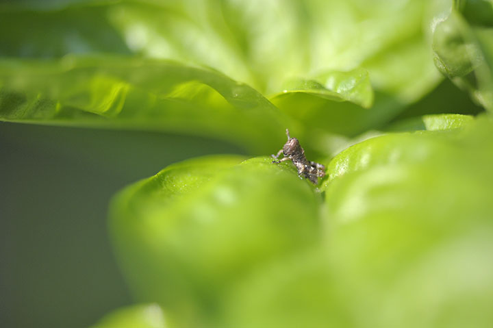 This is the smallest dang grasshopper type bug I have ever seen. It was hanging out on the basil this morning. I should probably get a longer macro lens; my guess is that those of you who look at this site on your phones are out of luck. Love the green though.