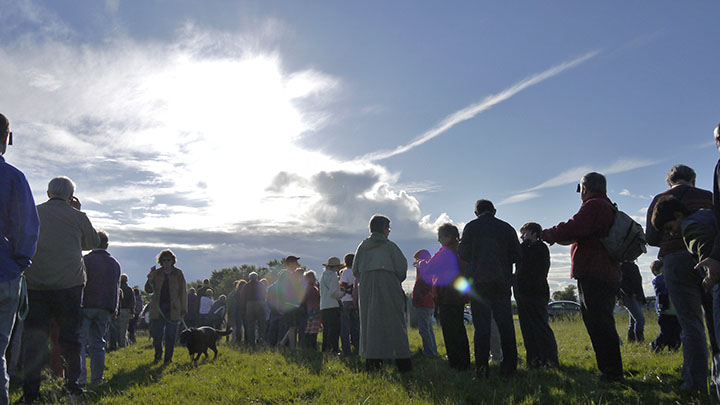 Cris and I took the Pearl for a walk early this evening and we stumbled upon an interesting crowd at the UMASS Sunwheel. It dawned on me pretty quickly that it had something to do with the “Transit of Venus“.