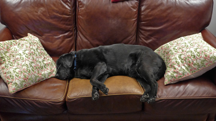 A bit of “karma congestion” lately. So as a default I feel like doing a Pearl post. We never let her up on the furniture until about a year ago, but now she seems to have claimed the center section of this sofa. It is really nice to have the wood stove going with her asleep next to you.