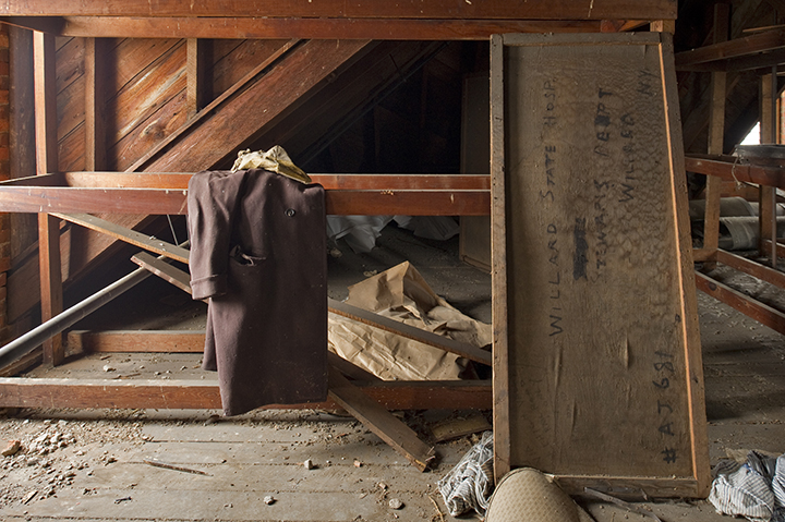 Willard employee Beverly Courtwright and the attic where the Willard Suitcases were stored.