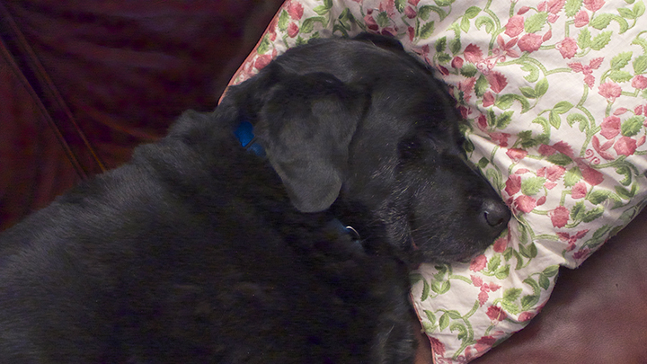 Pearl had some pretty heavy duty surgery on Tuesday. She had a large mast cell tumor on her side and it really needed to come off. Our wonderful vet Deb Lichtenberg thought it was a good thing to do, and we are glad we went through with it. The recovery has been going well so far. Off to get the temporary drain removed this afternoon and then another ten days before the stitches come out. I took this shot a few days before the operation. We never let her up on the furniture until about a year ago, but hey, she’s 12 and we want her happy.