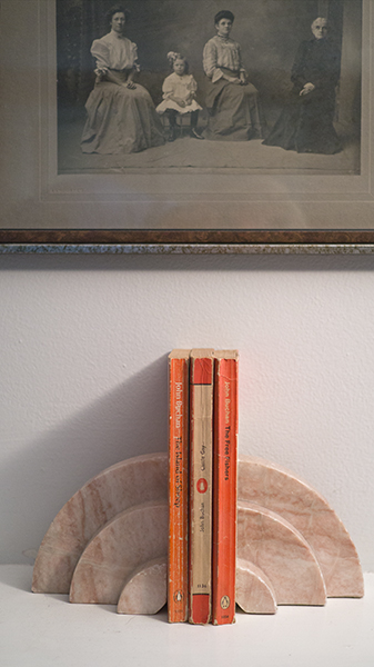 I’ve been thinking of my late parents quite a bit recently. The photograph is of my father’s family. They moved from Cornwall in the UK to Central City, Colorado where I believe this shot was taken. Dad turned me on to the Scottish writer John Buchan, and I have a large collection of his books; mostly hardbacks, but a few in these lovely old Penguin editions. These beautiful art deco bookends are marked “Genuine Rocky Mountain Alabaster” and come from Kohlberg’s / Denver, which I assume is or was some sort of a shop.