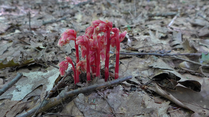 Cris and I took the Olive up into the woods late this afternoon. Thanks to Sarah, Leonard, and SCJ (all readers of this blog) I think I can safely say that this is a ghost plant (aka Indian Pipe, monotropa uniflora, or monotropa hypopithys).