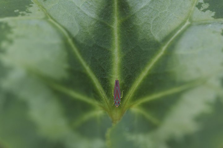 I’ve been “stalking” this guy for a while now. I have seen him many times, but he has always been gone by the time I have made the effort to photograph him. (Although I have a vague memory of an earlier post on the same subject.) He is always in the same spot on this leaf; right at the base. Today he was just hangin’ out and I had a few minutes to grab my camera and take his picture. I think the plant might be a begonia, but I am awful at remembering what plants are called. Can anyone identify the bug?