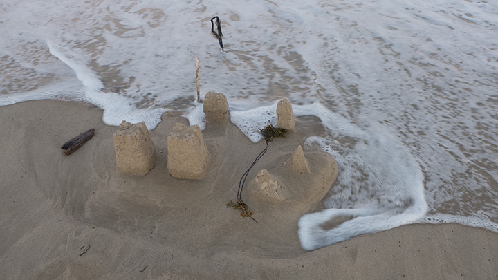 Here’s a sand castle about to disappear.