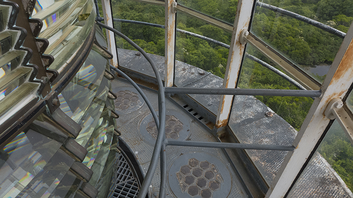 The building was built in the 1870s and shows signs of wear, but it is still a functioning lighthouse.