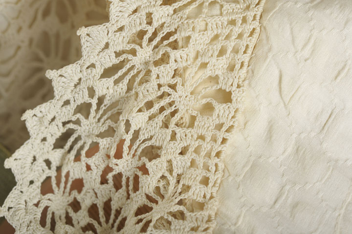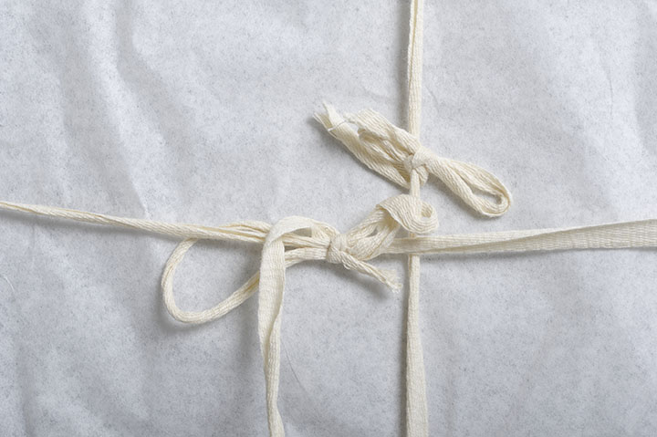 It might be a bit difficult to make out, but the bow on this dress so resembles the way the string is tied on the outside of the wrapped cases that I immediately made a connection between the two.