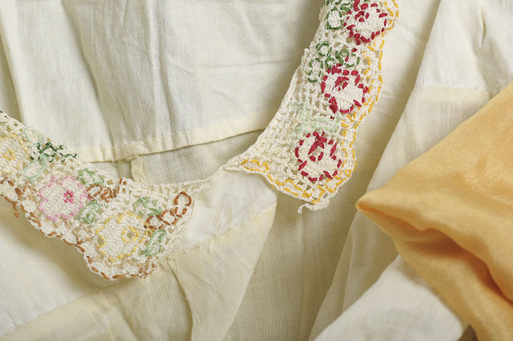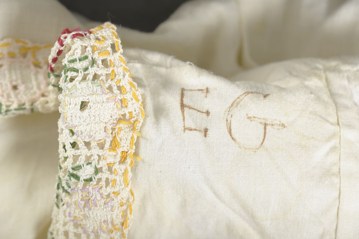 I couldn’t figure out why she or someone else wrote her initials on this dress, especially in such a prominent place.