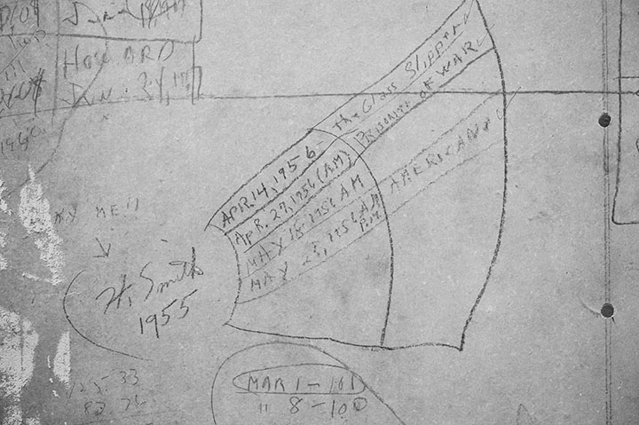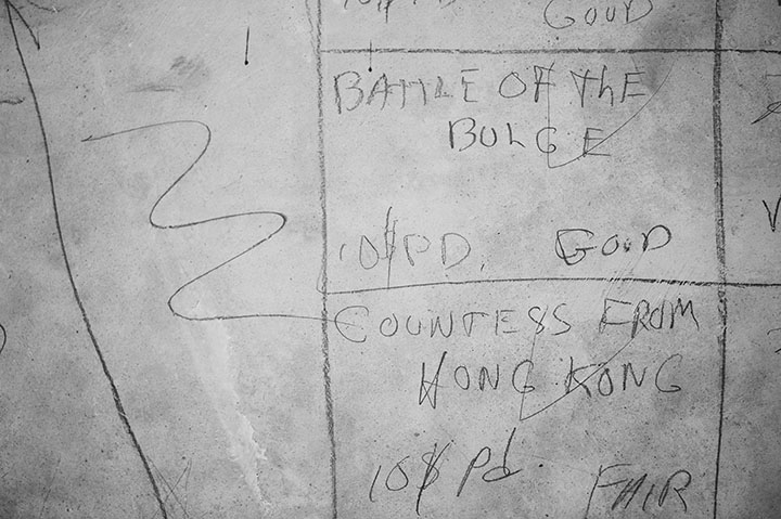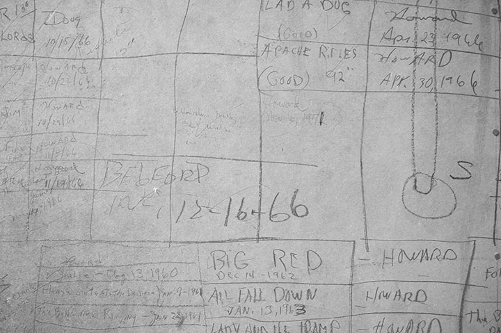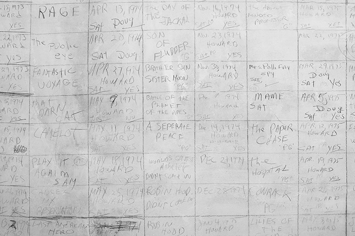 The tradition for the projectionists was to write the name of the film and the date it was shown on the walls.