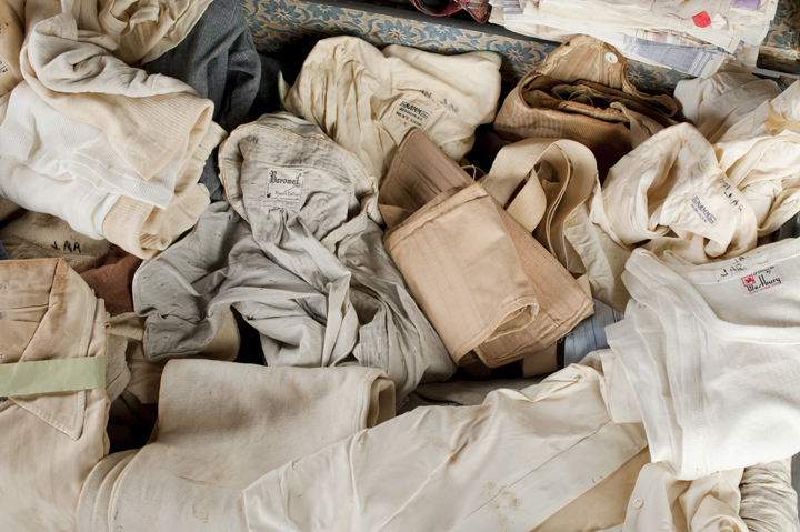 Thank goodness for Peg. I have mentioned before just how important she is to the project. I probably would have never done the second Kickstarter without her, or for that matter, even thought about shooting all 400 of the suitcases. Friday was a good case in point. Every single article of clothing in Joseph’s collection had been assigned a catalogue number by the museum. This meant taking the objects out of their archival boxes, keeping track of the small pieces of paper on which those numbers were written, hiding the numbers in the folds of the clothes so they weren’t visible in the photographs, setting up the shot, taking the photographs, rematching all the numbers with the articles, and finally putting them back into their designated storage boxes. We worked for about four hours on this one trunk; had I been alone it would have taken days.
