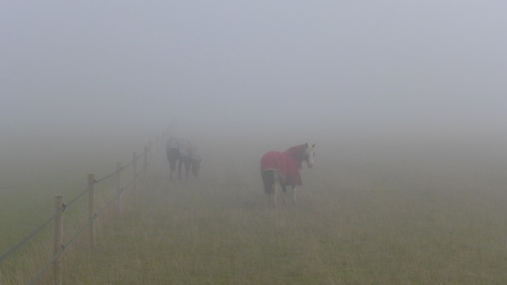 This time it was very misty. I am happy to say that the horse with the red coat had his friend back.