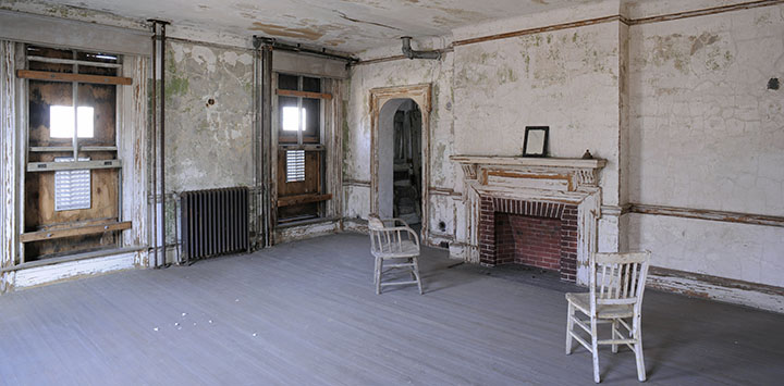 I had the rarest of opportunities yesterday. Pieper is giving a presentation on Ellis Island about the construction of the original buildings and he had me come out with him to take photographs to illustrate his talk. It was an incredible day, and I was mostly in a state of near rapture. I have always wanted to photograph the unrestored buildings on the island and am so grateful to Pieper and Darcy Hartman of Save Ellis Island for the chance. This photograph was taken in what I believe is called the Doctor’s (or Surgeon’s) residence. I’ll post more in the days to come. Here is some information on the talk: “The Actual Bricks and Mortar Story; Building Ellis Island’s Hospitals”. 10.30 to 12.30 on 15 April, 2012. It is open to the public but limited to 50 participants. For information, email information@saveellisisland.org For anyone interested in these buildings this is a unique chance to don a hardhat and take a tour of the usually off limits parts of the island.
