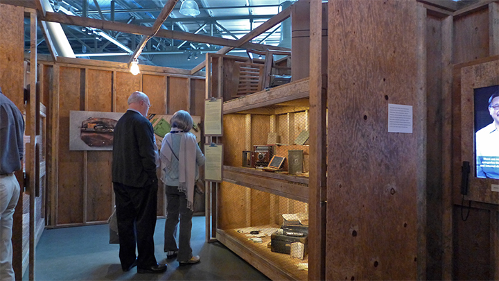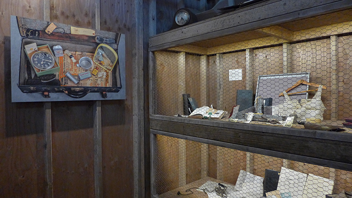 This view (↑) looks back toward the entrance and shows how the cases are displayed. The hanging clipboards are Karen’s “then and now” diagnosis of the patients. Several people told me that this was an extremely effective way to connect with the owners of the suitcases. It is a simple concept that describes how the doctors at the time of admittance made a diagnosis, and how those same symptoms might be treated today.