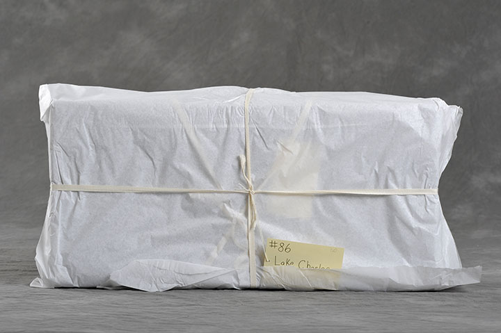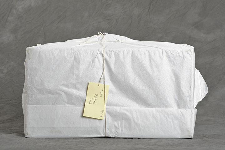 My interest in the wrappings and the bows has actually increased. The three women that did most of the work each had a different style. Sarah Jastremsky, Christine Allen, and Karen Chambers worked for months going through the cases cataloguing and then stabilizing each item. At some point I’ll get try to get together with them and find out who did what.