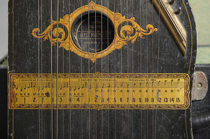 Inside was this instrument, which I believe is called a zither. (Any help in identifying it is welcome.)