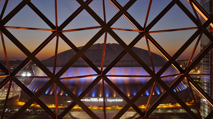 Our hotel is just next to the Superdome and this is the view from the 17th floor hallway. / It is impossible to walk around this city and not think of hurricane Katrina and the devastation it caused. And looking at this building that housed so many people in such great need is more than a bit unsettling. This is an amazing part of America and I feel fortunate to have finally made it down here.